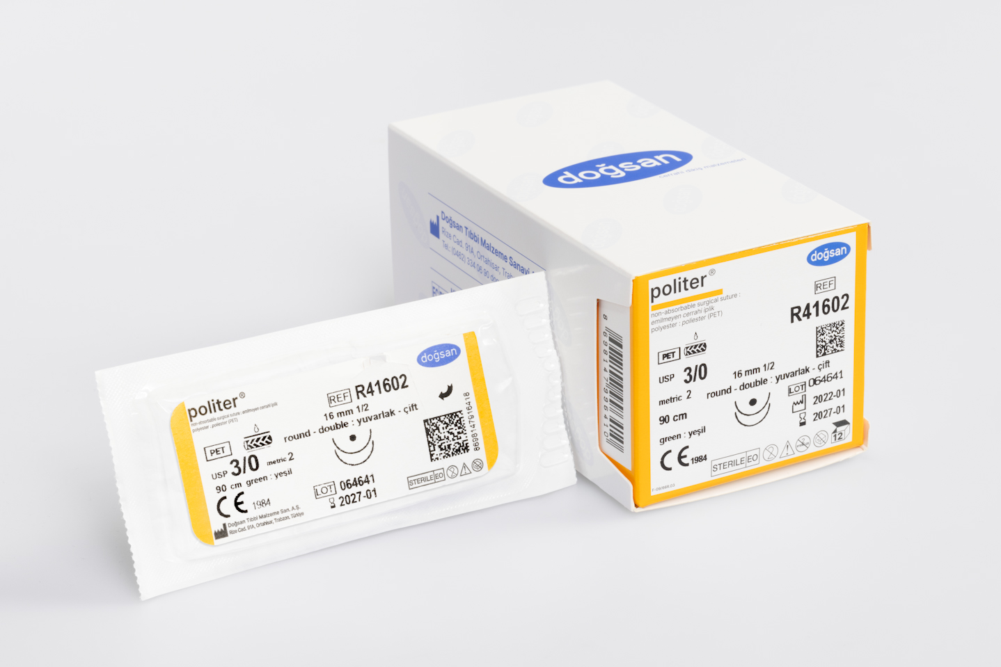 politer® is a braided, non-absorbable, silicone coated, sterile surgical suture made of polyester (Polyethylene terephthalate).